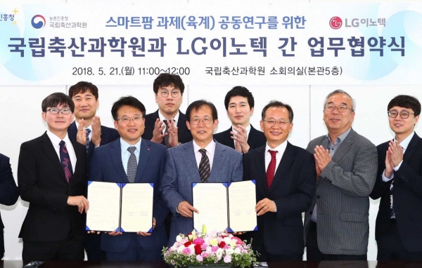 양측은 21일 전라북도 완주군 이서면 국립축산과학원에서 권일근 LG이노텍 CTO(최고기술책임자), 양창범 국립축산과학원 원장, 문홍길 가금연구소 소장 등이 참석한 가운데 '양계 스마트팜 기술개발 공동연구 업무협약(MOU)'을 맺었다. 양계 산업 경쟁력 제고와 농가 복지 증진을 위해서 효율적이고 전문화된 사육 시스템이 필요하다는데 뜻을 같이한 결과다.