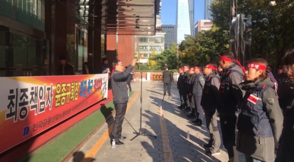 금융노조가 KB국민은행 채용비리 관련 첫 판결에 실망스럽기 그지없는 솜방망이 처벌이라고 비난했다.