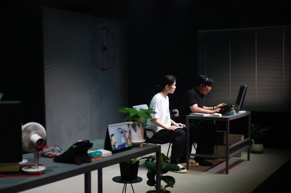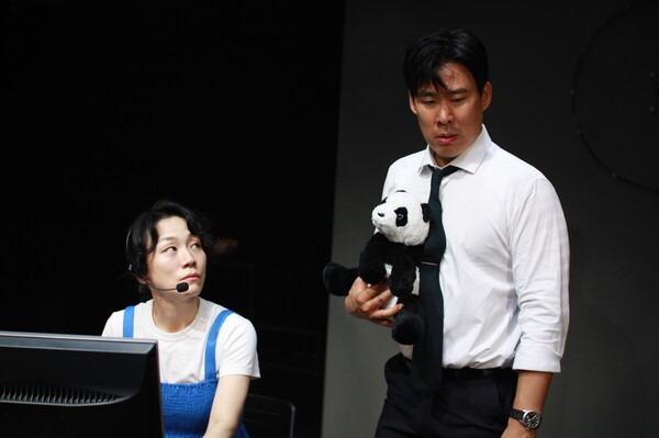 이 연극도 책상과 의자, 컴퓨터와 전화기라는 최소한의 소도구로 콜센터라는 극적 공간을 표현한다.