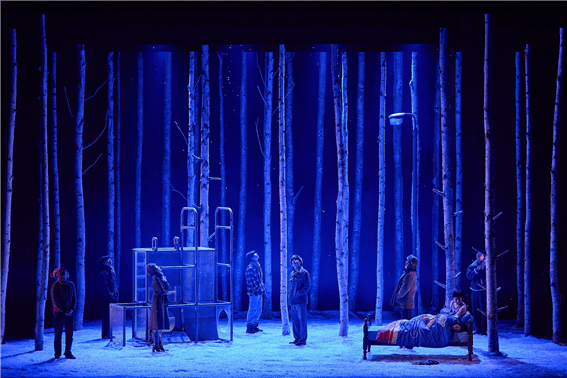 극장에 들어서니 북유럽의 차가운 겨울 숲이 무대 위에 펼쳐져 있었다. 방금 전까지 숨이 턱턱 막히던 폭염의 오후가 비현실적으로 느껴질 정도로 감각적인 무대였다.