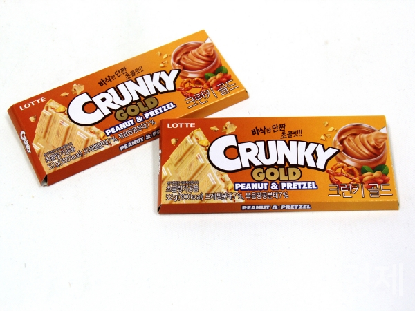 롯데제과 측은 "크런키 골드는 초콜릿에 짭조름한 맛을 적용한 국내 첫 사례"라며 "기존에도 초콜릿에 짭조름한 맛을 적용한 제품들은 있었지만 대부분 과자에 초콜릿을 입힌 초코 과자였다"고 밝혔다.