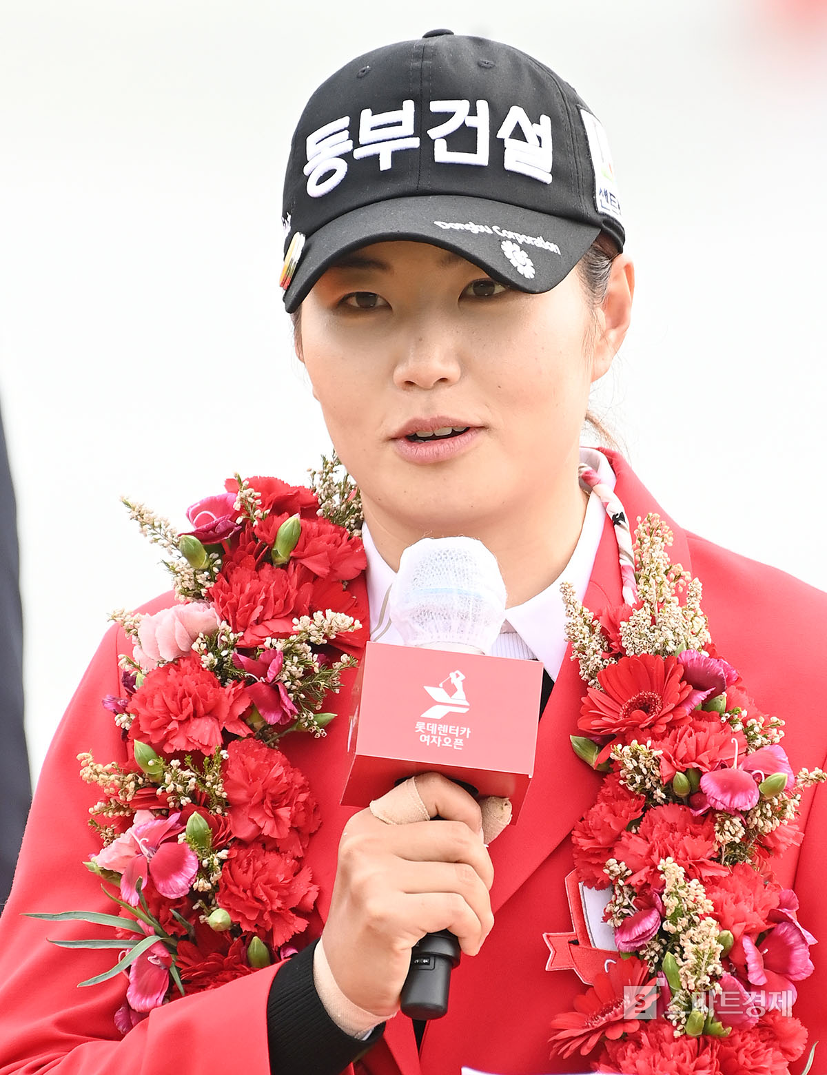 [스마트경제] 10일 오후 제주 서귀포시 롯데스카이힐 제주 컨트리클럽(파72·6395야드)에서 열린 '롯데렌터카 여자 오픈(총상금 7억원·우승상금 1억2600만원)' 최종라운드 경기, 장수연은 최종라운드에서 버디 5개, 보기 1개를 엮어 4언더파 68타를 기록, 최종 합계 9언더파 279타로 4년 7개월만에 정상에 올랐다.
