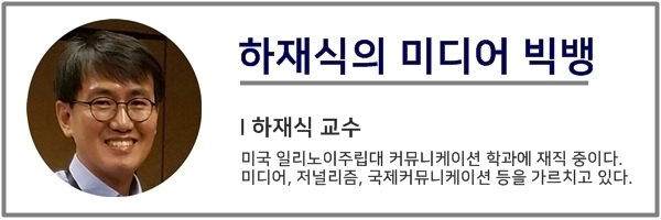 [편집자 주] 스마트폰과 소셜미디어의 전면화로 인해 지난 100년 동안 익숙했던 미디어 환경이 혁명적 변화를 겪고 있다. 구글과 페이스북 등의 플랫폼 사업자와 넷플릭스, 아마존 등 신규 콘텐트 사업자들이 수 억명의 회원을 거느리며 승승장구 하고 있다. 이 와중에 기성 신문, 방송, 매거진 사업자는 생존과 나락의 갈림길에서 헤매고 있다. 미디어 산업은 본질적으로 오락과 여가적 속성이 강하지만, 민주주의 제도의 근간을 이루는 언론산업의 측면도 무시할 수 없다. 그래서 미디어혁명은 세상 어느 한곳에 영향을 미치지 않는 곳이 없는 것이다. 이와 같은 미디어빅뱅을 현장에서 체험하고 있는, 미국 일리노이주립대 하재식 교수가 스마트경제에 미디어산업 현장 칼럼을 연재한다.