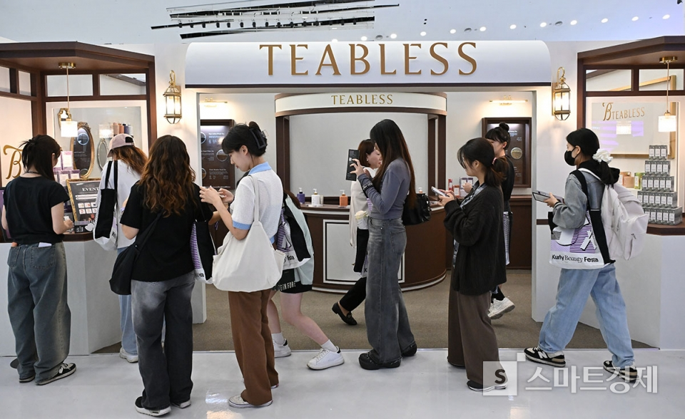 10일 오후 서울 중구 동대문자인플라자(DDP)에서 열린 '컬리 뷰티 페스타 2024'에서 참관객들이 부스를 둘러보고 있다.