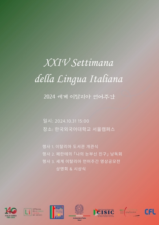 이어 오후 3시부터는 ‘엘레나 페란테의 나폴리 4부작을 다시 읽으며 – ’나의 눈부신 친구‘ 낭독회’와 올해의 주제 ‘이탈리아어와 책: 행간 사이의 세계’를 주제로 학생들의 영상공모전도 열린다.